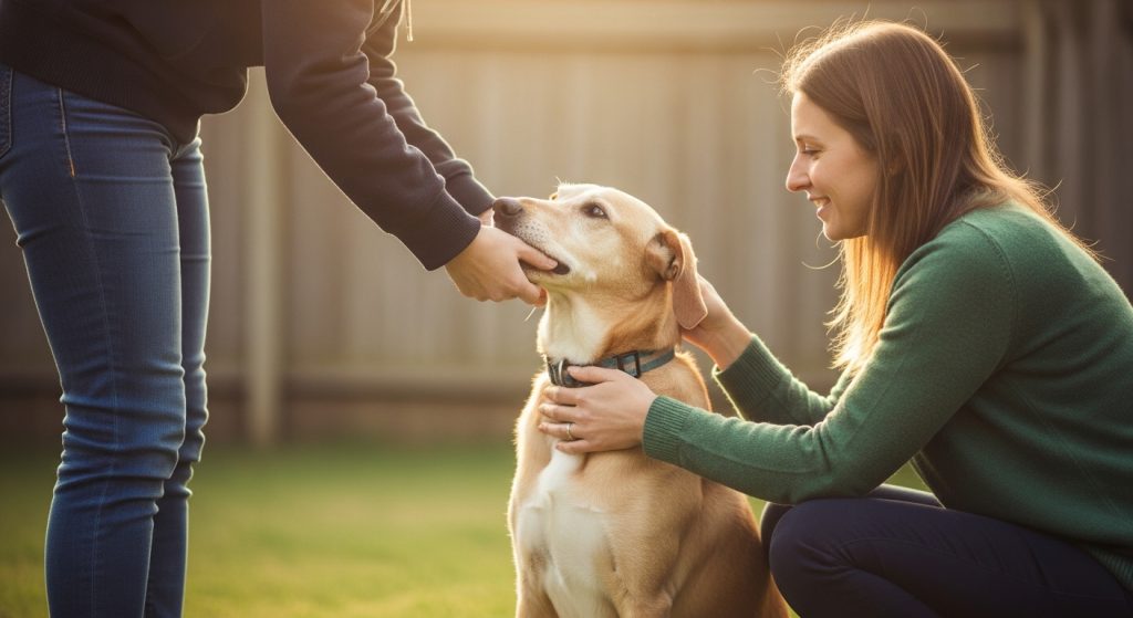 Dogs pick up on human tone and body language incredibly well. If you sound angry or tense, your dog reacts with appeasement signals — lowered body, tucked tail, and wide eyes — to defuse what they perceive as a threat.