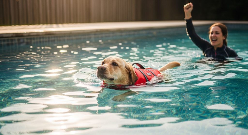 Pro tip: Encourage your dog with treats and praise — turning the first swim into a positive experience builds confidence.